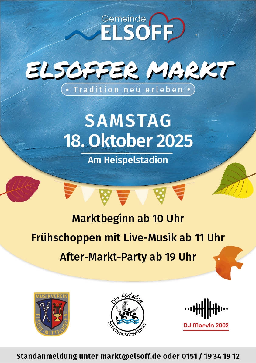 Am Samstag, den 18. Oktober 2025, findet wieder der traditionelle Elsoffer Markt statt. Im letzten Jahr war der Elsoffer Markt ein großer Erfolg – darauf bauen wir 2025 auf! Die bewährte Verlegung von Dienstag auf Samstag nach Gallus hat sich als voller Erfolg erwiesen und bleibt selbstverständlich bestehen. Das Programm und der Charakter des Markts bleiben erhalten – familiär, regional und vielfältig.